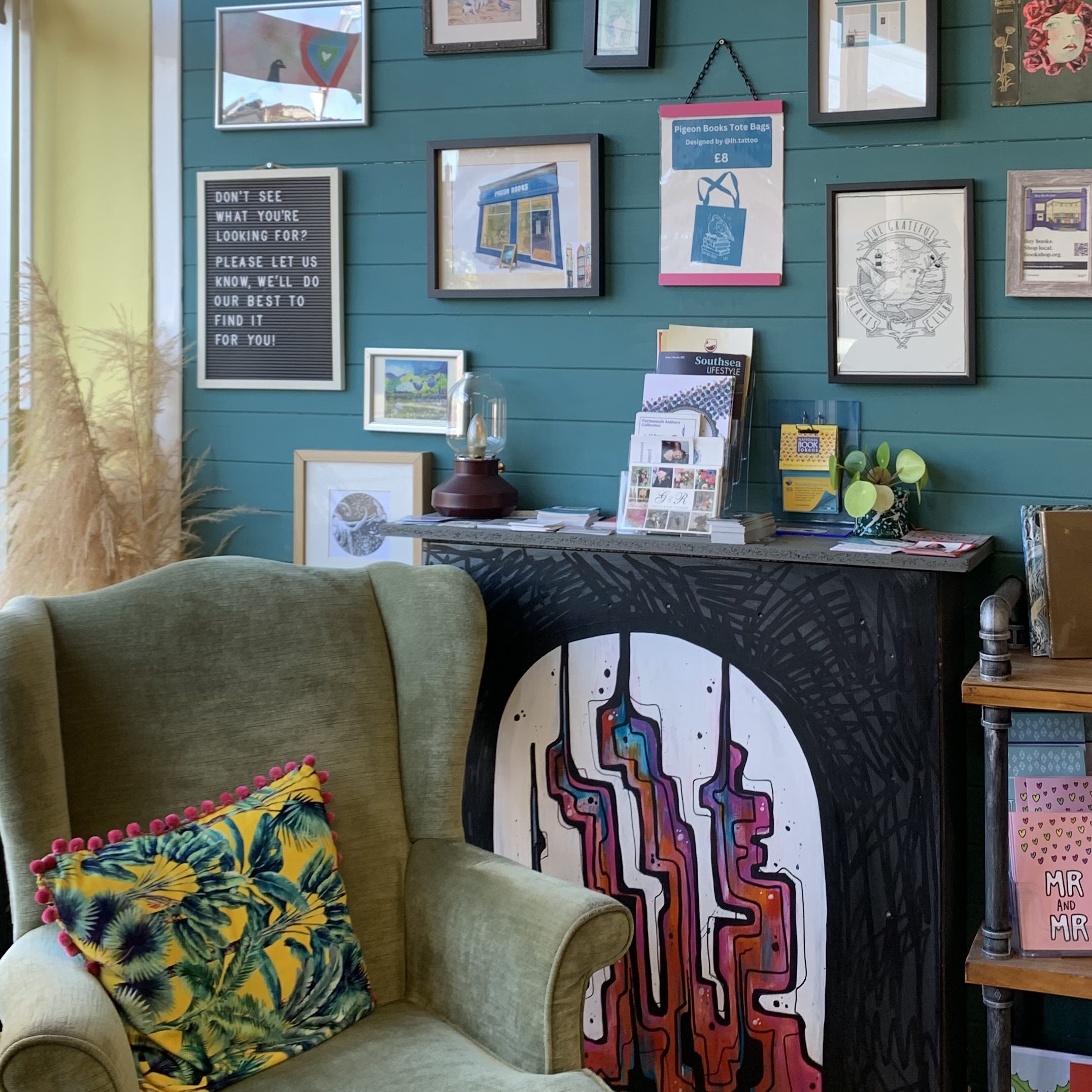 Walking into Pigeon Books, you’ll instantly feel at home: bright colours and beautifully filled shelves greet you, sometimes with a happy bark or two from Bear. I particularly love their armchair and art wall which always has me smiling. They recently celebrated Books Are My Bag’s Bookshop Day and had patrons queueing outside the doors!